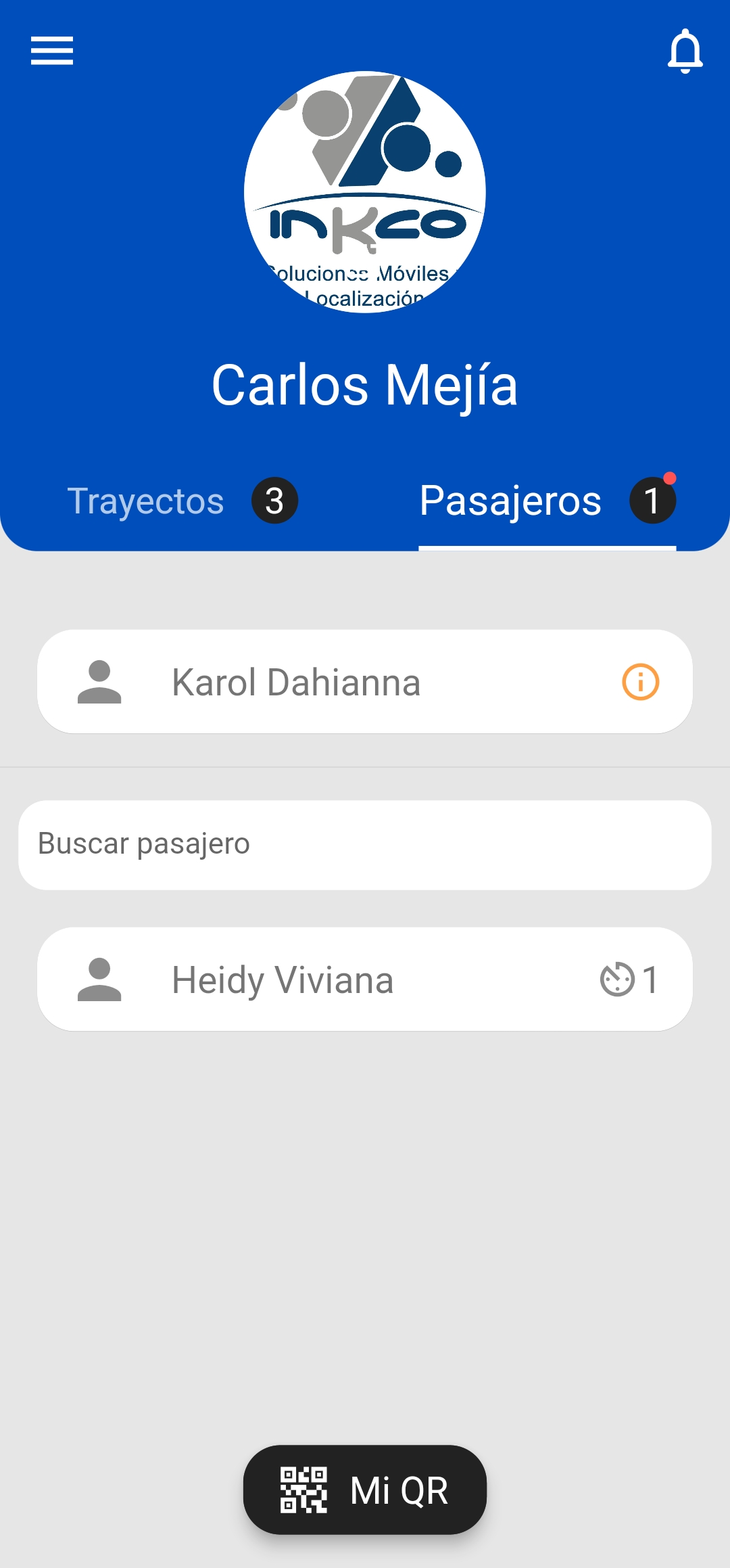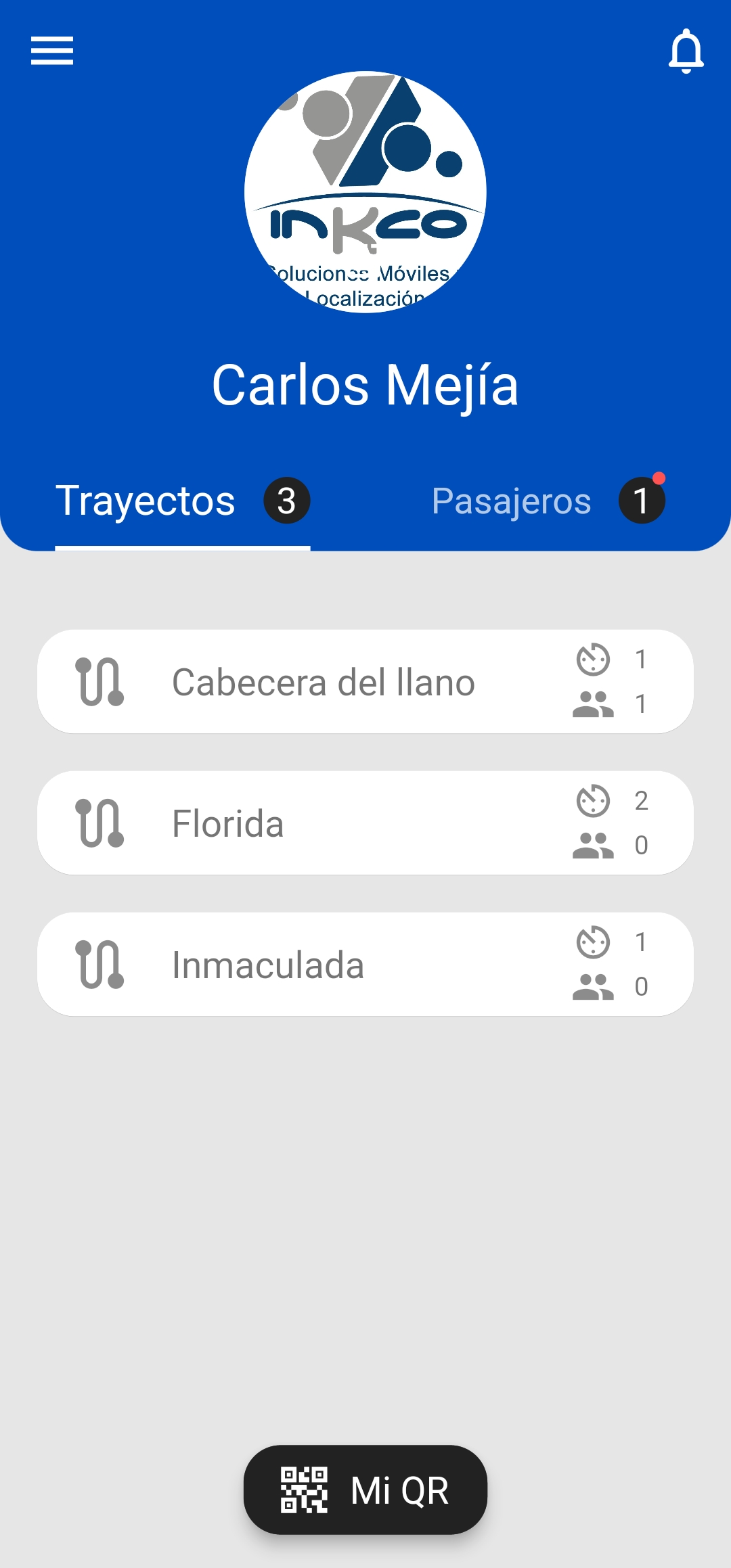 Tus itinerarios(rutas) estarán agrupadas por trayectos, en cada itinerario encontrarás la información del mismo y los pasajeros inscritos.